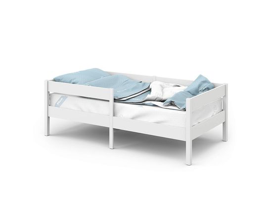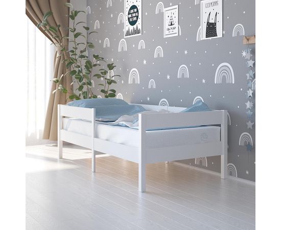 Это очень надежная и удобная кроватка для детей от 3 лет. Она разработана в современном скандинавском стиле из экологически чистых материалов и отлично подходит как для мальчиков, так и для девочек. Бортики выполнены из безопасного и практичного ЛДСП. Ножки кровати – из высококачественного дерева – массива сосны, покрытой полимерной краской. В отличие от дешевых красок на водной основе, полимерные покрытия, используемые в данной кровати, более безопасные, практичные и придают деталям более глубокий, насыщенный цвет. Дно кровати выполнено из гнутых березовых латофлексов, скрепленных лентой для удобства монтажа, обеспечивающих ортопедическую упругость и выдерживают впечатляющую распределенную нагрузку до 100 кг (при использовании матраса). Передний бортик кровати можно установить на правую и левую сторону, что позволяет поставить её в интерьере так, как будет удобно вам и вашему ребенку.
