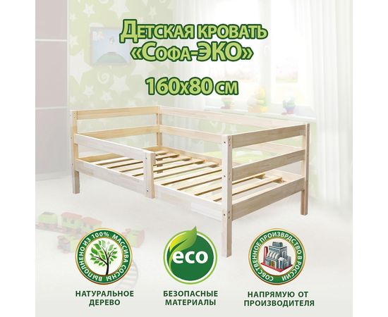 Кровать подростковая "Софа Эко ", хороший вариант для детской комнаты. (спальное место 160*80, реечное дно, съемный бортик)