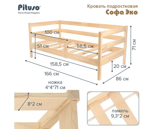 PITUSO Кровать Подростковая Софа Эко Натуральный