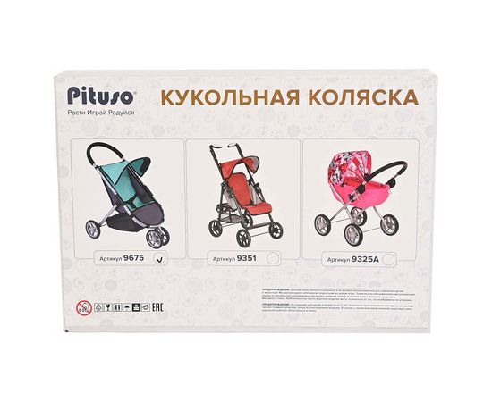 PITUSO Кукольная коляска Прогулка Black/Green/Черный/Бирюза (60*38*62)