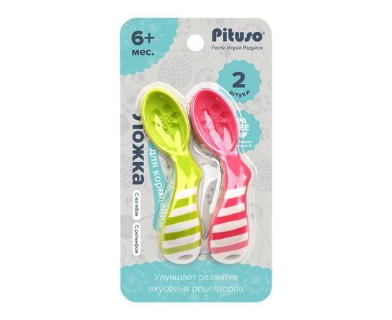 PITUSO Ложка с изгибом анатомическая 2 шт Green/Pink (Зеленый+Розовый)
