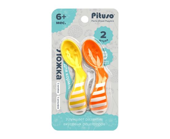 PITUSO Ложка с изгибом анатомическая 2 шт Orange/Yellow (Оранжевый+Желтый)