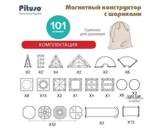 PITUSO Магнитный конструктор с шариками (101 эл.)