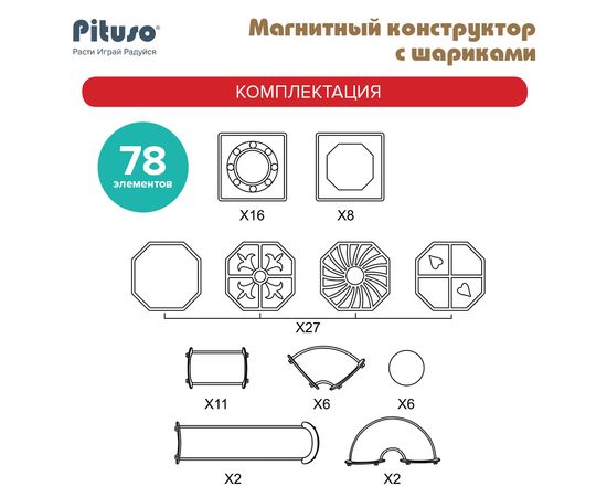 PITUSO Магнитный конструктор с шариками (78 эл.)