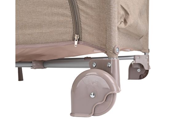 - 2 колеса с фиксаторами делают удобным перемещение манежа-кроватки по дому