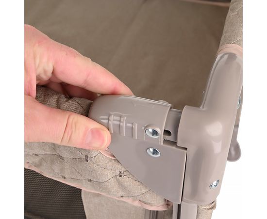 - Опускающийся бортик, манеж легко трансформируется в приставную колыбель.