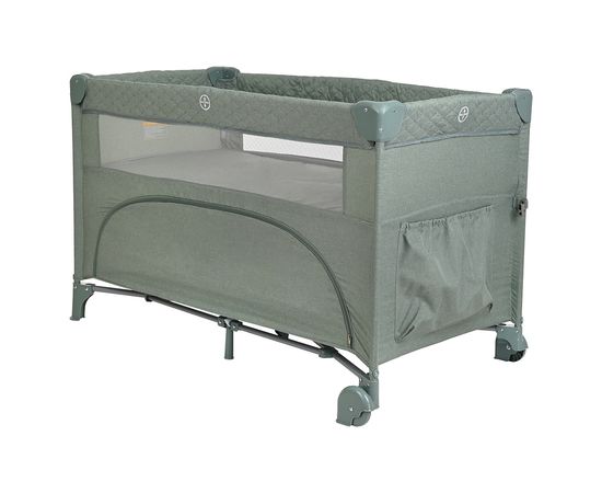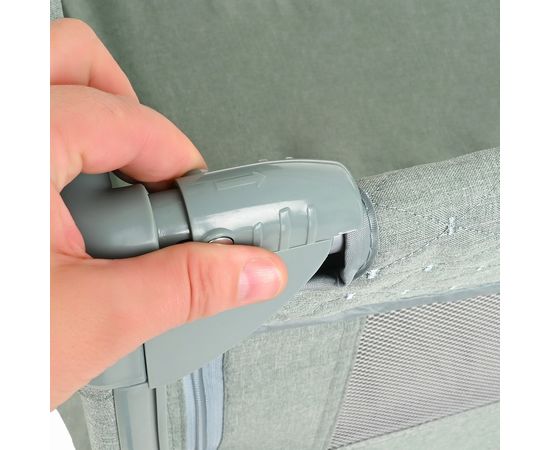 - Опускающийся бортик, манеж легко трансформируется в приставную колыбель.