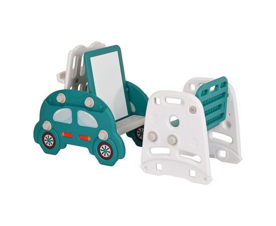 Из набора можно собрать – стульчик для кормления, столик для конструирования или доску для рисования, стеллаж для хранения детских книжек, стульчик и горку для катания ребенка.