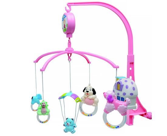 Мелодичная песенка и завораживающее движения игрушек-подвесок позабавят малыша.