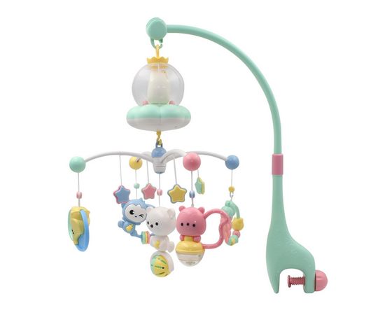 Мелодичная песенка и завораживающее движения игрушек-подвесок позабавят малыша.