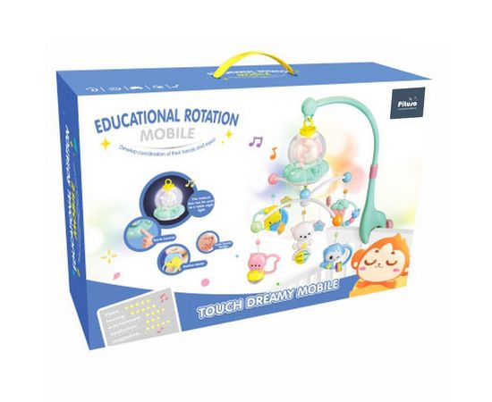 Она отлично привлекает внимание карапуза, тем самым развивает фиксирование взгляда на движущихся предметах, а встроенная музыкальная шкатулка с приятной мелодией прекрасно успокаивает.
