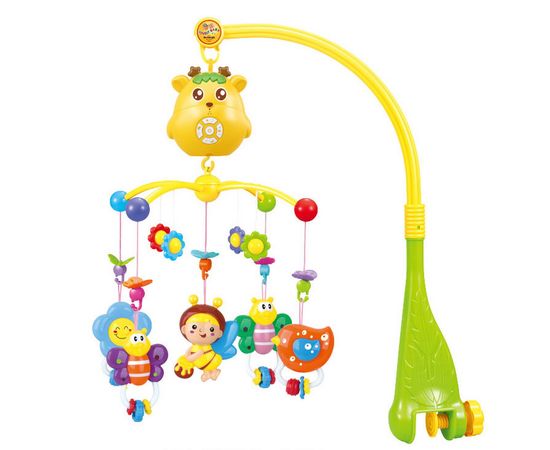 Она отлично привлекает внимание карапуза, тем самым развивает фиксирование взгляда на движущихся предметах, а встроенная музыкальная шкатулка с приятной мелодией прекрасно успокаивает.