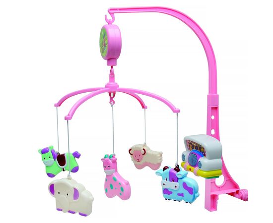 Мелодичная песенка и завораживающее движения игрушек-подвесок позабавят малыша.
