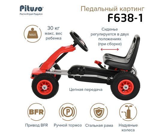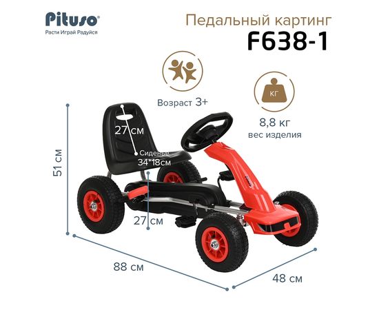 PITUSO Педальный картинг F638-1 (88*51*48см), надувные колеса, Красный/Red