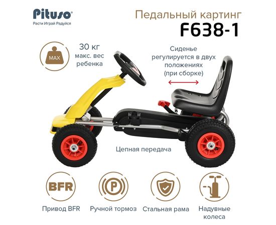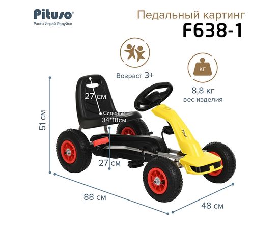 PITUSO Педальный картинг F638-1 ( 88*51*48см), надувные колеса, Желтый/Yellow