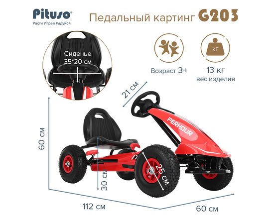 PITUSO Педальный картинг G203 (112*60*60 см), надувные колеса, Красный/Red