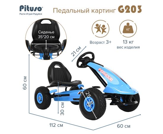 PITUSO Педальный картинг G203 (112*60*60 см), надувные колеса, Синий/Blue