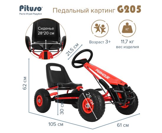 PITUSO Педальный картинг G205 (105*61*62 см), надувные колеса, Красный/Red