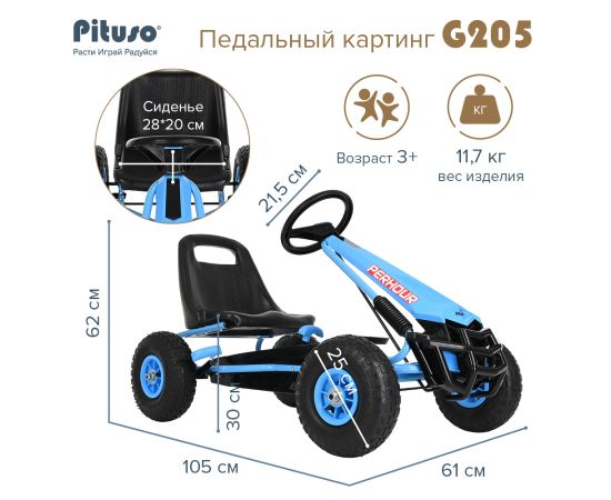 PITUSO Педальный картинг G205 (105*61*62 см), надувные колеса, Синий/Blue