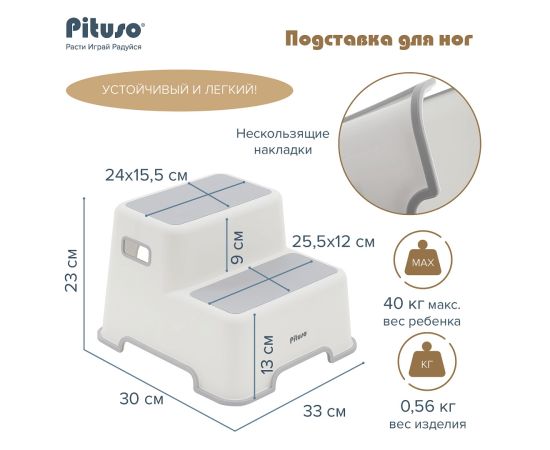 PITUSO Подставка для ног 2-ступенчатая антискользящая Grey/Серая,30*33*23 см FG3615-Grey