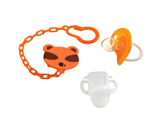 Пустышка заменяет материнскую грудь и дает ребенку чувство удовлетворения. Пустышка помогает стабилизировать эмоции вашего ребенка, поможет ребенку научиться дышать через нос. Кроме того, сосание может также тренировать сосательную и глотательную функцию ребенка. Набор поставляется с цепочкой для предотвращения потери.