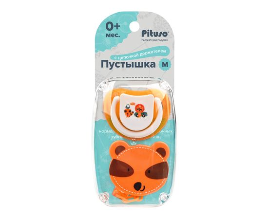 PITUSO Пустышка силиконовая + держатель размер M ORANGE FOX