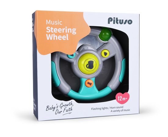 PITUSO Развивающая игрушка МУЗЫКАЛЬНЫЙ РУЛЬ серый