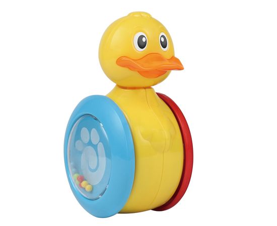 Увлекательные игры с утенком-неваляшкой способствуют развитию у малышей тактильных ощущений, реакции, координации движений и слуха.