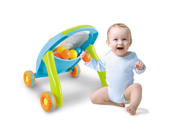 Ребенок может держаться за ручку и идти, толкая каталку перед собой.