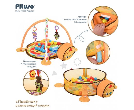 PITUSO Развивающий коврик Львенок 3в1