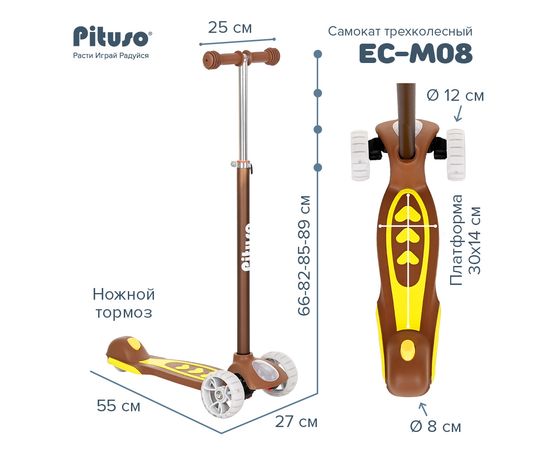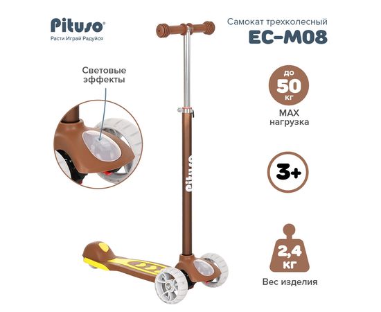 PITUSO Самокат трехколесный EC-M08 Brown/Коричневый