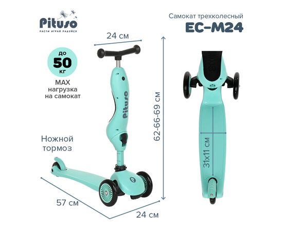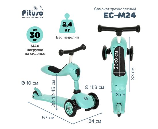 PITUSO Самокат трехколесный EC-M24 2 в 1 Light green/Светло-зеленый
