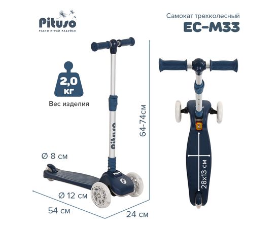 PITUSO Самокат трехколесный EC-M33 Blue/Синий