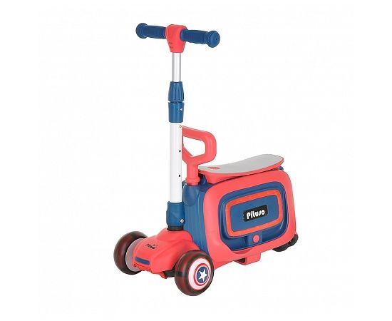 Самокат 3 в 1 ( самокат, беговел, каталка). Интересное решение от бренда Pituso сделают прогулки веселыми и интересными. Самокат состоит из двух частей, которые можно использовать как вместе с самокатом, так и без. Основные функции: 3-х колесный складной самокат, беговел и каталка. Самокат состоит из двух частей, вторая часть съемная и может использоваться отдельно, с помощью встроенных колес превращается в каталку. Под сиденье расположен удобный багажник куда ребенок может положить небольшие игрушки. Самокат оснащен различными мелодиями (на английском языке), колеса самоката светятся, а каталка имеет разноцветную подсветку.