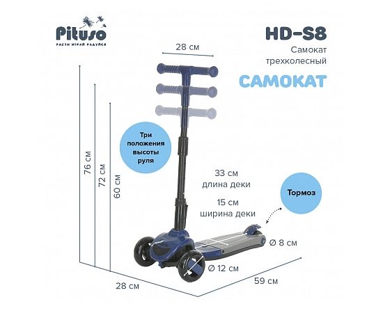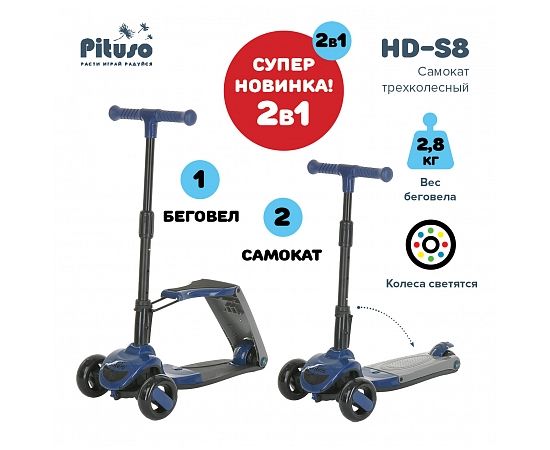 PITUSO Самокат трехколесный HD-S8, 2в1 Blue/Синий, 4 шт. в коробке
