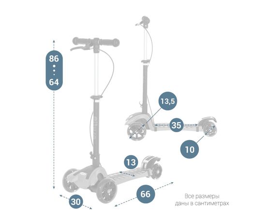 - Переднее колесо: D13,5*3,8 см, полиуретан