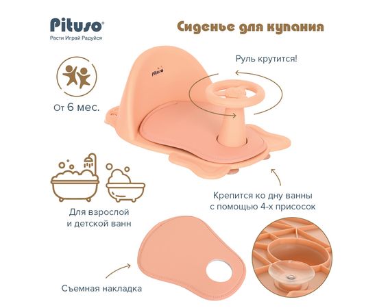 Сиденье для ванной подходит для купания малышей старше 6 месяцев, освоивших навык сидения.