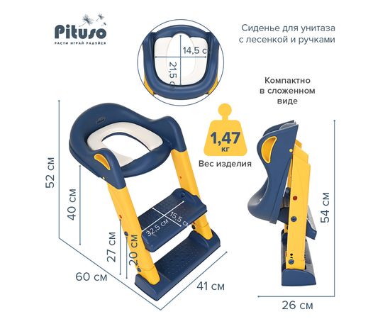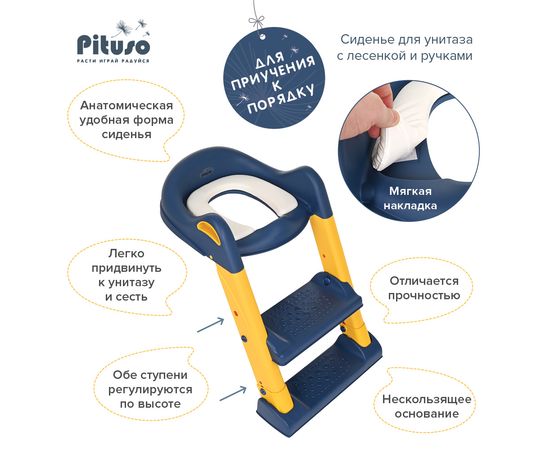 PITUSO Сиденье для унитаза с лесенкой и ручками (2 ступени) Blue/Голубой