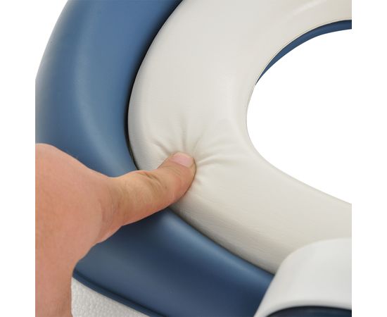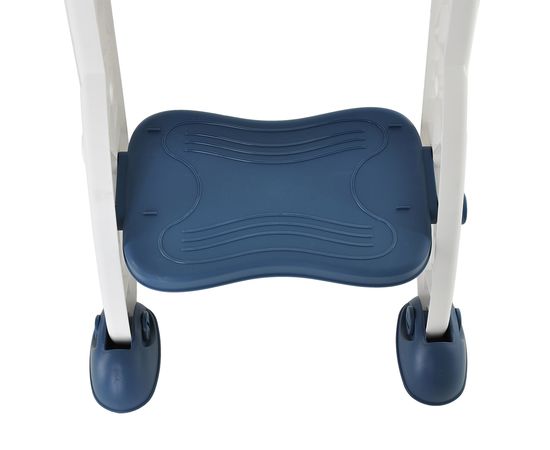 Конструкция имеет удобные поручни и регулируемую по высоте ступеньку, поэтому ребенок может самостоятельно садиться на унитаз и слезать с него. Кроме того, ступенька служит подставкой для ног, когда малыш сидит на унитазе.