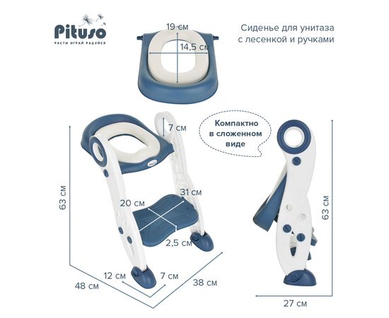 PITUSO Сиденье для унитаза с лесенкой и ручками Blue/Синий