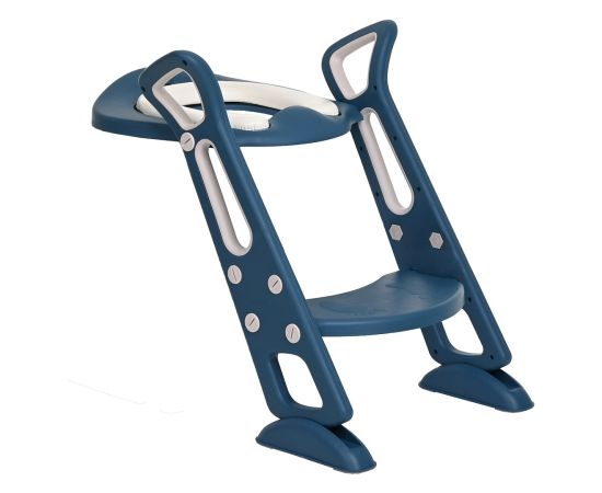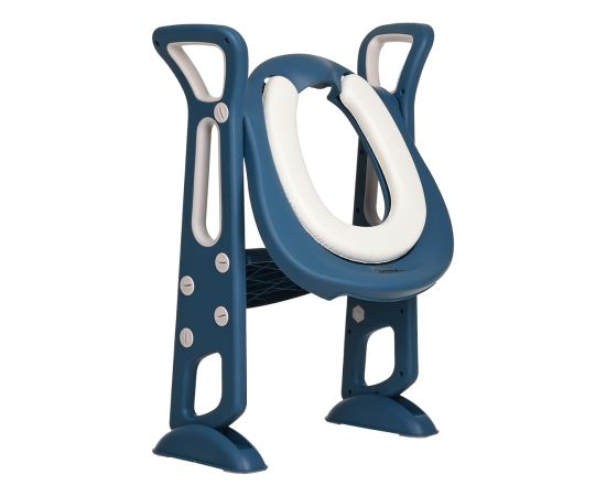 Конструкция имеет удобные поручни и регулируемую по высоте ступеньку, поэтому ребенок может самостоятельно садиться на унитаз и слезать с него. Кроме того, ступенька служит подставкой для ног, когда малыш сидит на унитазе.