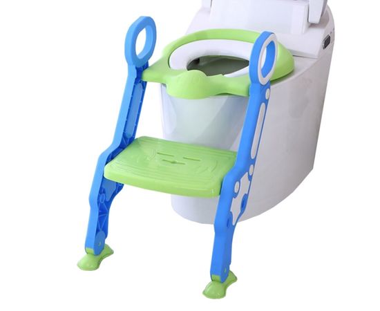 Конструкция имеет удобные поручни и регулируемую по высоте ступеньку, поэтому ребенок может самостоятельно садиться на унитаз и слезать с него. Кроме того, ступенька служит подставкой для ног, когда малыш сидит на унитазе.