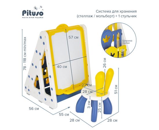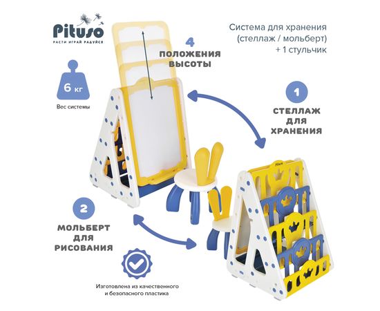 PITUSO Система для хранения (стеллаж/мольберт)+1 стульчик, Yellow/Желтый