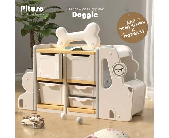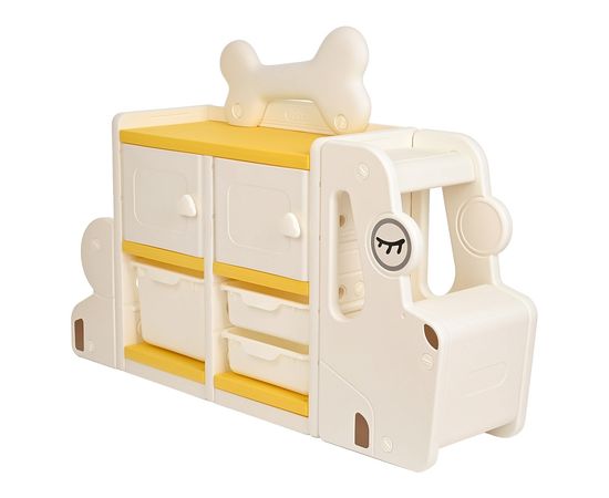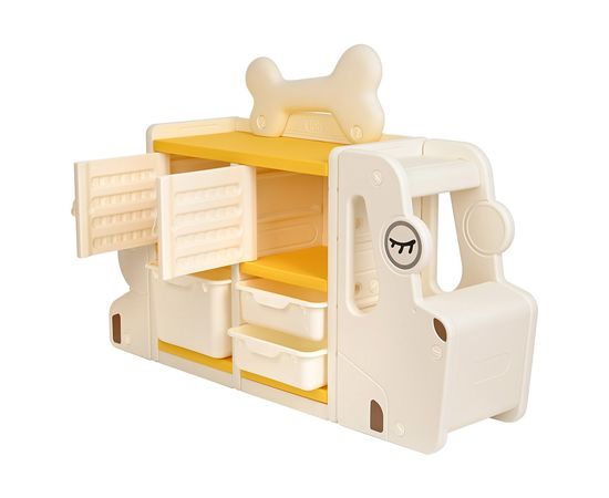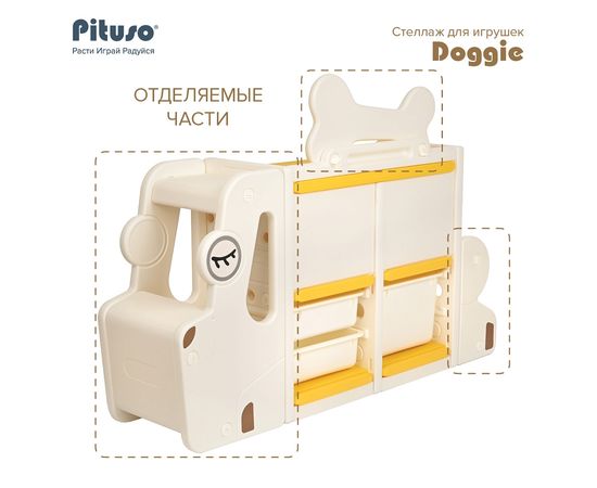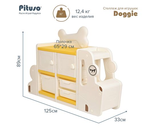 PITUSO Стеллаж для игрушек с ящиками Doggie,Beige/Бежевый+желтый,125*33*89h