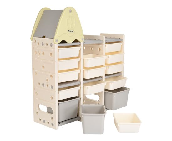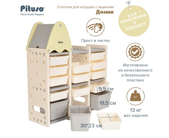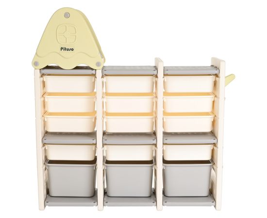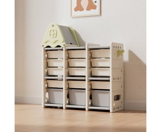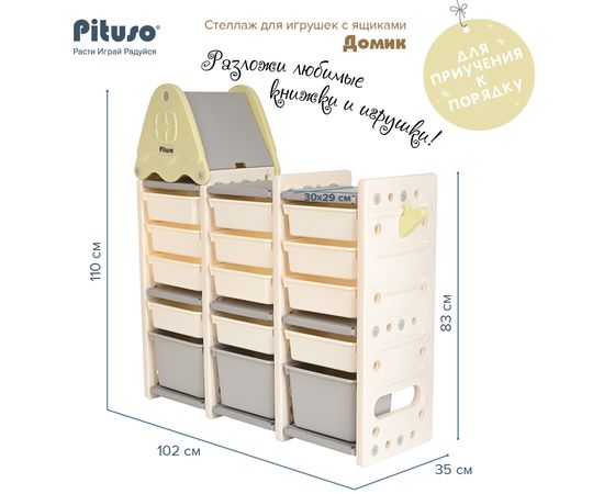 PITUSO Стеллаж для игрушек с ящиками Домик,5 полок,Green/Серый-белый-фисташка