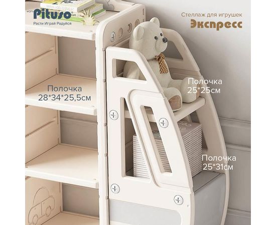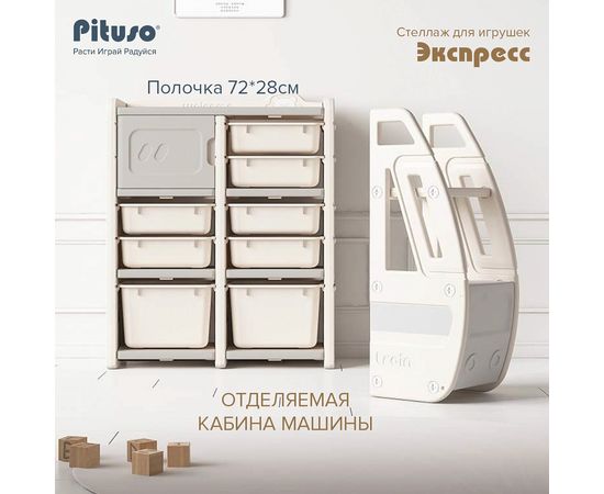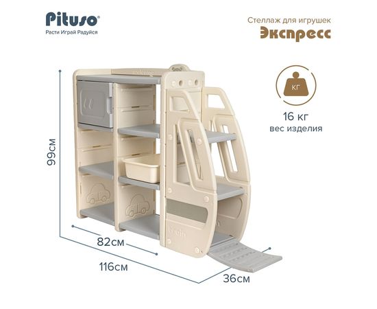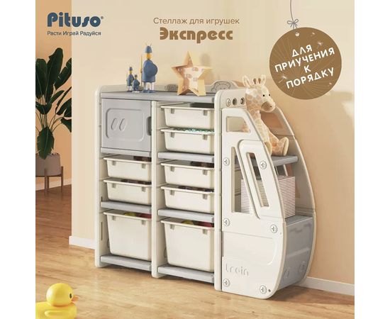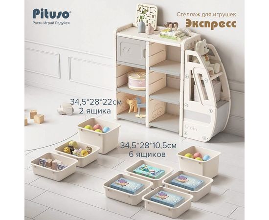 PITUSO Стеллаж для игрушек с ящиками Экспресс, Grey/Серый-бежевый,116*36*99h