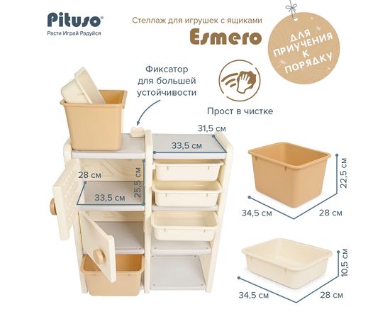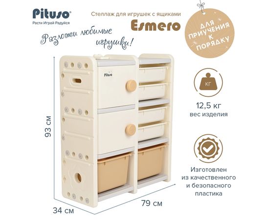 PITUSO Стеллаж для игрушек с ящиками Esmero,3 полки, Coffe,79*34*93h