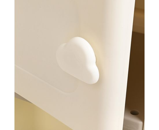 На полках разной формы и размеров ребенку будет удобно расставить любимые книги и вещи. Вместительные открытые ящики отлично подойдут для игрушек или мелких детских вещей.