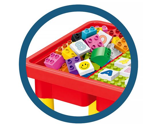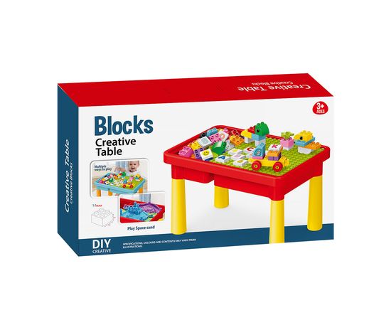 В наборе: столик для конструирования + конструктор 56 элементов.