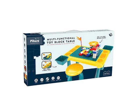PITUSO Стол для игры с конструктором, в комплекте с конструктором (58 эл.) + 1табурет